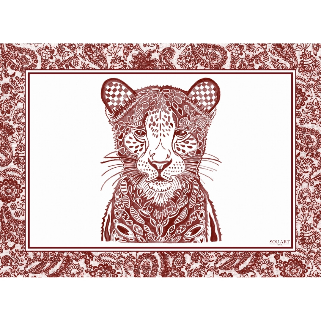 Uma canga criada para quem aprecia personalidade e poesia: cada tom marsala carrega a energia selvagem e encantadora deste leopardo marcante.