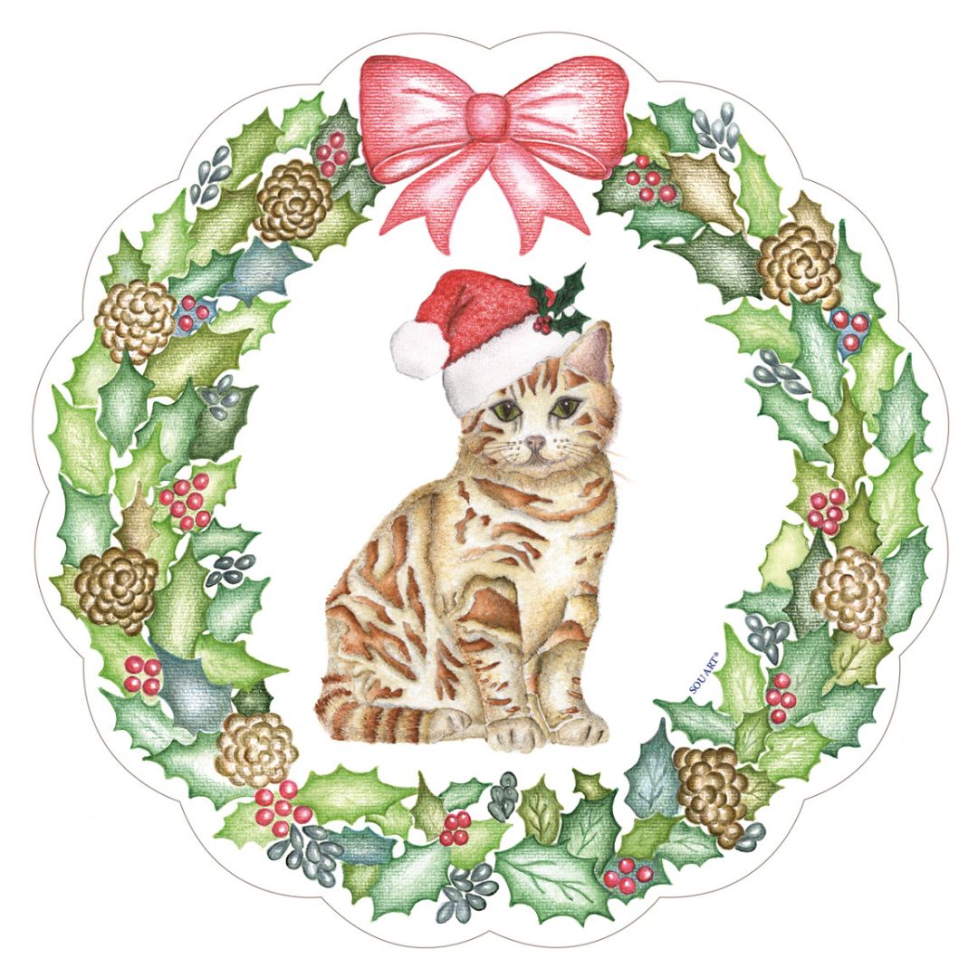 Nos jogos americanos de guirlandas natalinas, os filhotes do cachorro e do gato surgem como símbolos de afeto e pureza. Eles representam a ternura dos laços que se renovam a cada celebração, trazendo consigo a inocência, a alegria e o aconchego que tornam esta data ainda mais especial. Entre cores, luzes e memórias, cada detalhe dessa arte foi pensado para aquecer o coração e transformar a mesa em um espaço de união, amor e encantamento. Porque o Natal é feito de encontros, e nada traduz melhor esse espírito do que a doçura dos nossos pequenos companheiros emoldurados pela beleza da tradição.