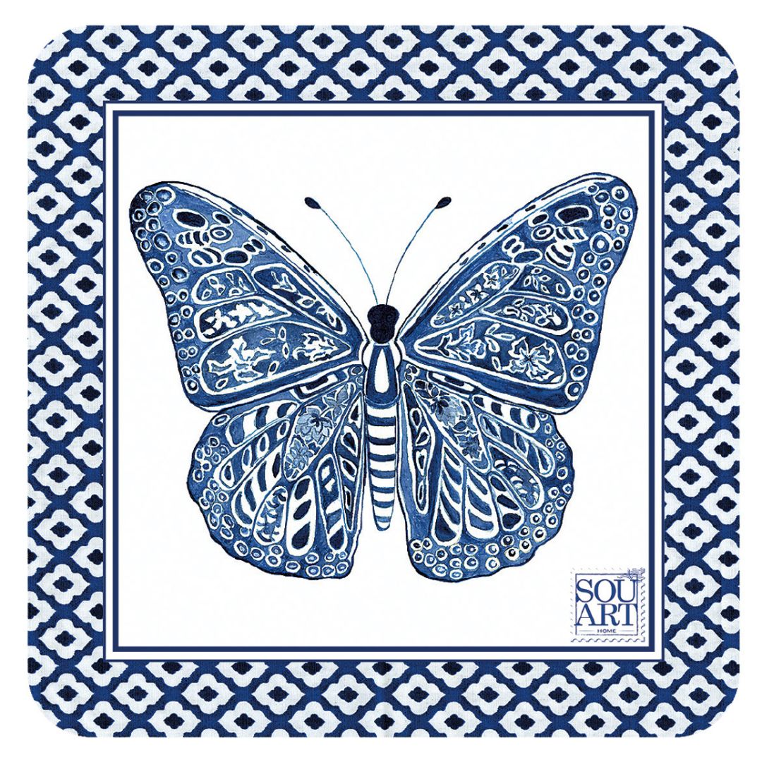 Jogo Porta-Copo Quadrado Borboleta Azul