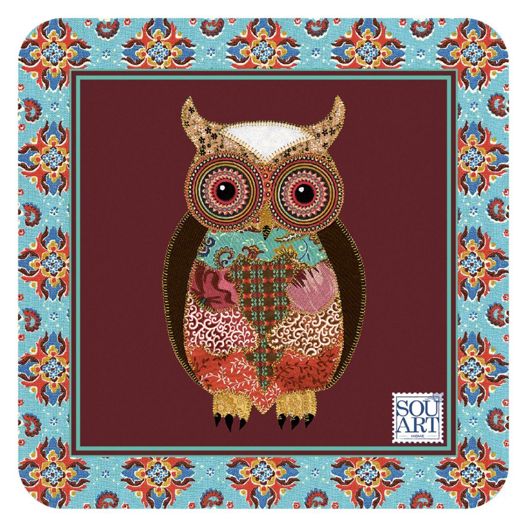 Jogo Porta-Copo Quadrado Coruja Colorida